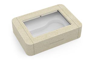 Gemaakt van een eco-hybride materiaal dat 40% vezel bamboe bevat om het gebruik van plastic te verminderen. Deze doos heeft een prachtig helder venster om uw bedrukte promotionele product binnen het doosje te presenteren. Het deksel wordt stevig op zijn plaats gehouden door twee kleine magneten.